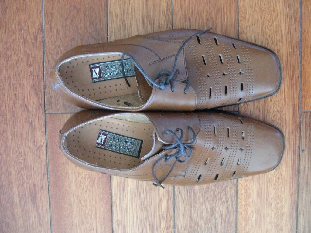男鞋一双,皮质,老爸送给LG的样式老气了,44码的,穿过一次,50转了.