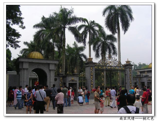 在太子城那天,还看了国王的住所。据说这个住所本来是一个华人的大宅子,后来被马来国王看上了,就交涉要买。这家人出了1马币(目前相当于2人民币)。国王惊呆了,反而不知道怎么买了。于是提出了很优厚的条件,给了多少平方公里的地(我忘了),用1马币买了这个宅子。