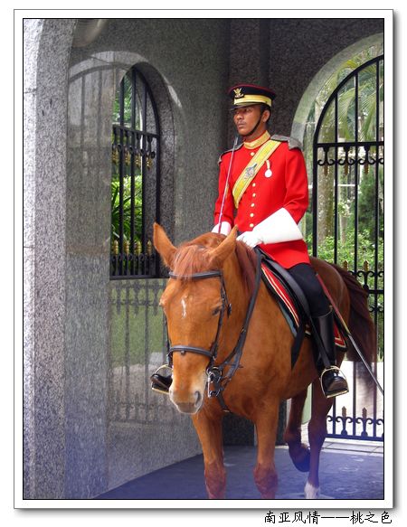 门口骑兵卫士。可以和游人一起摄影。马的脾气和卫兵的脾气都很好。很多人越过红线,站到禁区和马近距离拍照。我是偷了半天空,才找了一个没有人员补充上来的时候抢拍的,只有卫兵和马。