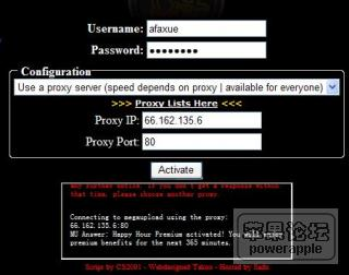 user name和password就填写你megaupload的帐号密码,填好后直接点下方acitvate。好了,超人变身完成,你已经是MU的高级会员了,被打回原型之前随便下吧。