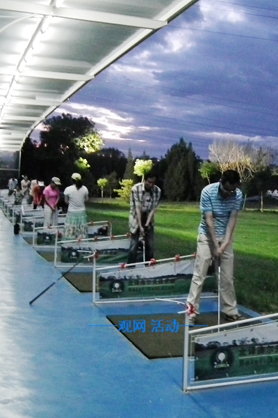 既然是“踩点”,咱们观网的工作人员少不得先替大家试打试打哈,嘿嘿,其实我们也都是初次摸杆,体验传说中的“贵族”运动……(镜头外,悄悄在拍照,镜头内,剩下的人一个都不少,看看你都认识谁呢。)