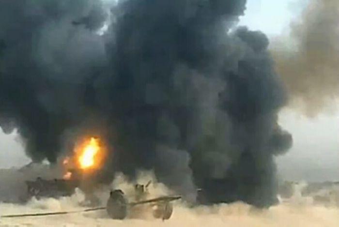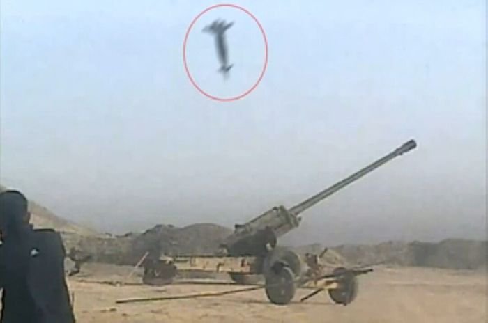 近日,网络曝光一段疑似IS士兵在叙利亚伊拉克边境近距离拍摄美军定点清除IS火炮阵地的视频。视频很罕见地捕捉到了美军宝石路III激光制导炸弹集中武装分子的M46型130毫米加农炮的最后一刻。