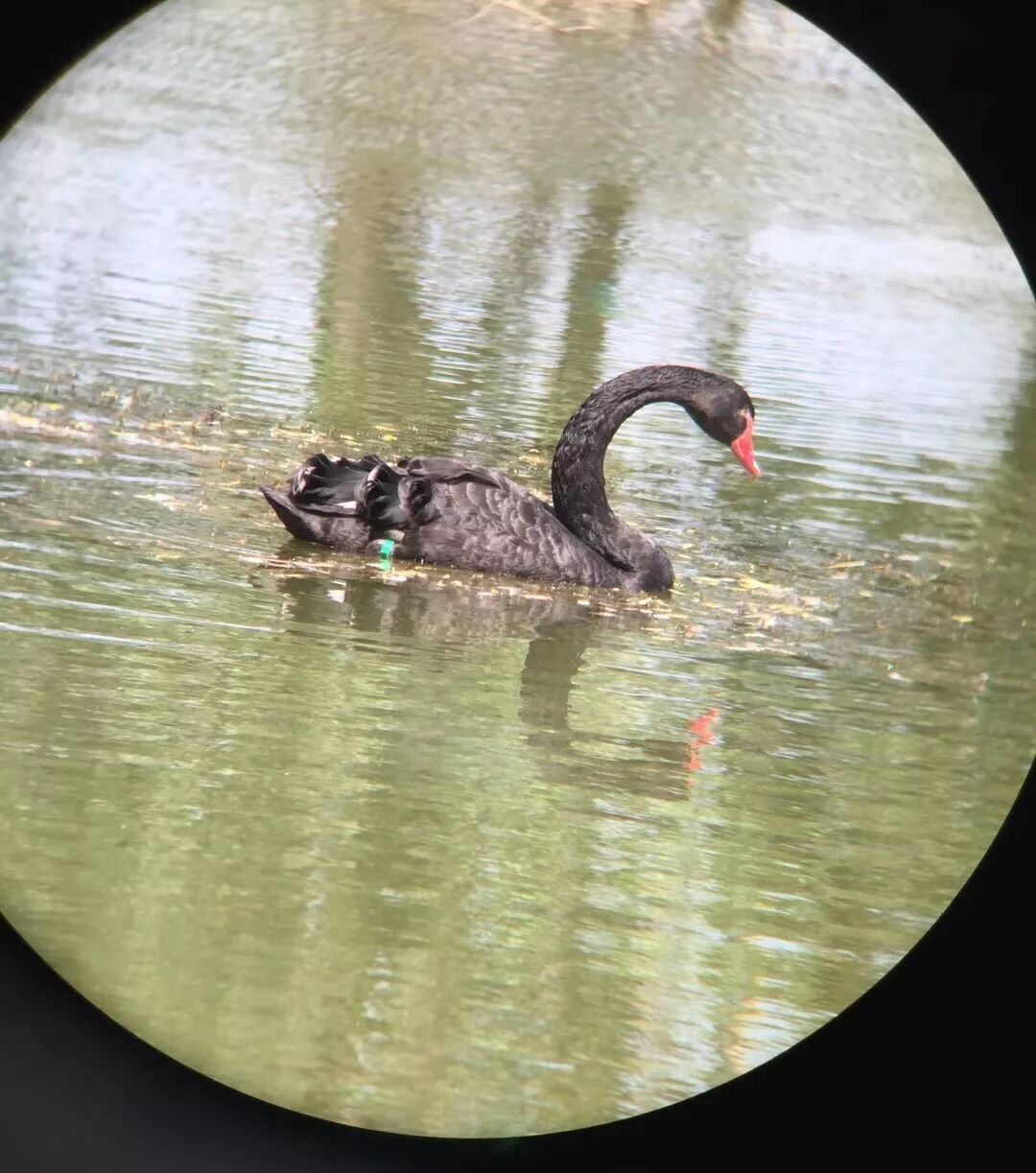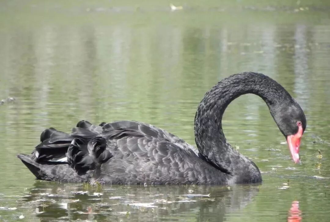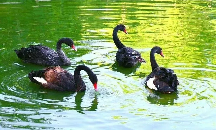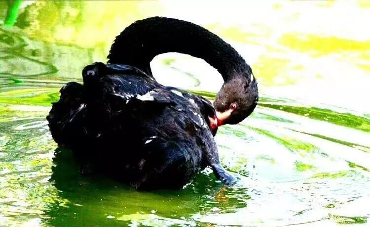 黑天鹅(学名:Cygnus atratus):是鸭科天鹅属的一种大型游禽,体长110-140厘米;翼展160-200厘米;体重3.7-8.75千克。具有天鹅种类中最长的脖子。这个细长的脖子通常呈“S”形拱起或直立。全身羽毛卷曲,体羽斑点闪烁,主要呈黑灰色或黑褐色,腹部为灰白色,飞羽为白色。尾长而分叉,外侧羽端钝而上翘形似竖琴。 大家在观赏的时候 可不要抓、摸、喂食黑天鹅 别把它们吓到哦! 希望大家文明观鸟