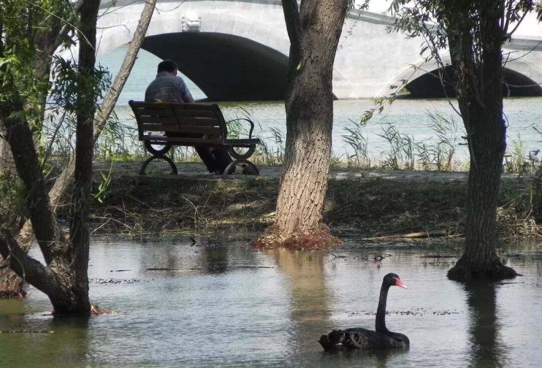 穿过滨河森林公园木桥一直往南 就是黑天鹅经常出没的地方