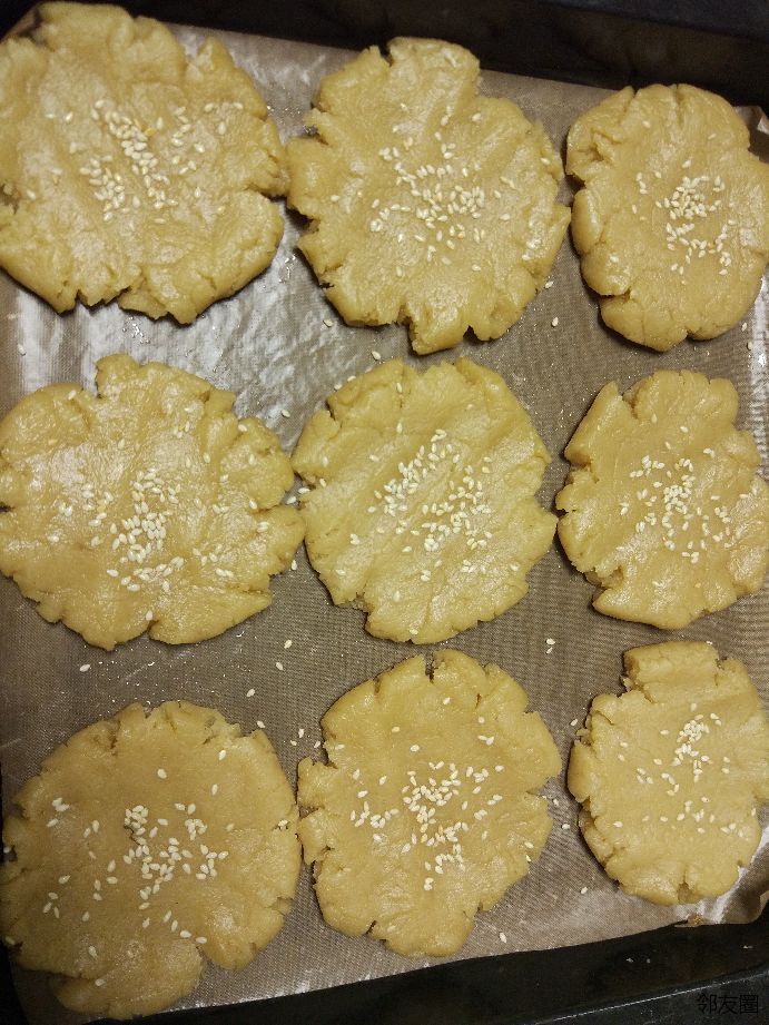 第一个放了豆沙,面粉,鸡蛋,木糖醇啥的,我也不知叫啥,瞎起个名蛋月烧{:1_312:}下面桃酥。(空)