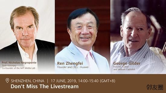 根据华为官网发出的公告,2019年6月17日下午2点,华为创始人兼CEO任正非将在深圳与数字时代三大思想家的其中两位,《福布斯》著名撰稿人乔治·吉尔德和美国《连线》杂志专栏作家尼古拉斯·内格罗蓬特进行100分钟的交流和谈话。