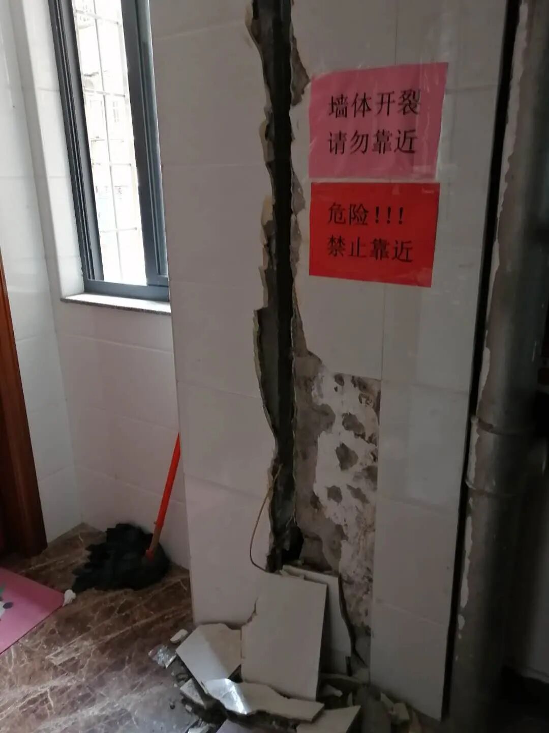 “由于墙体开裂压迫,导致自来水水管破裂、电线短路、燃气管道泄漏等险情时有发生,上下居民楼的唯一一条廊道也受到影响。”几百万房产降到几十万抛售有人买吗?!估计只有拍大片的公司炸着玩才舍得买吧?!(空)
