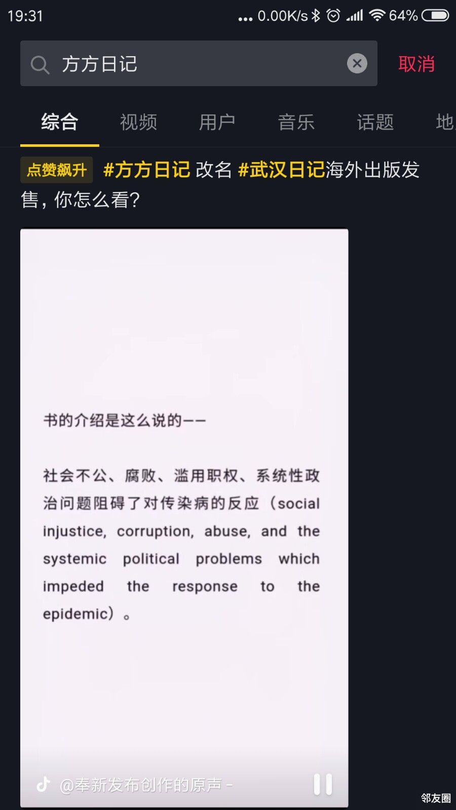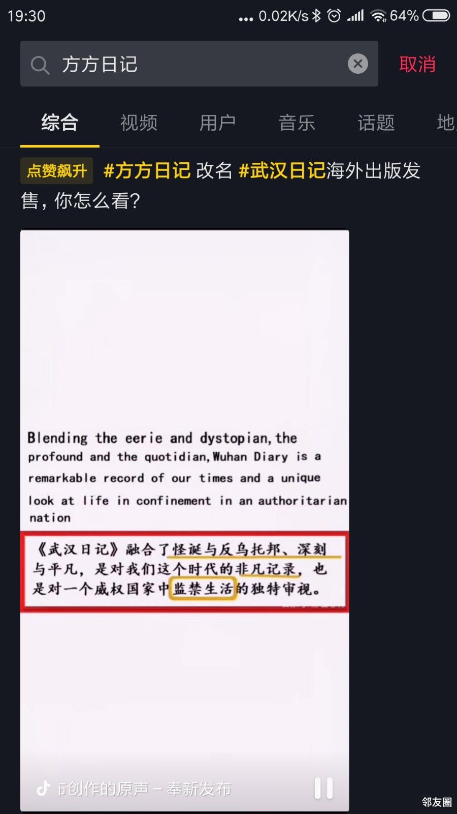 #方方日记 改名 #武汉日记海外出版发售,你怎么看? https://v.douyin.com/3JyCH1/(空)