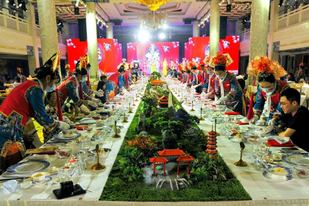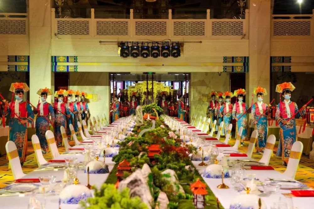 《中华一品宴》新版饮食文化体验剧,以影视歌舞融合的手法,创新奇特的表演,趣味迭出的互动,贯穿众多史实人物。近一个小时的美食体验,让顾客穿越中华传统饮食文化三千年,在享受美食的时候尽情体验饮食文化的独特魅力。复工复产后,餐厅对原本的表演内容进行了改编,融入疫情防控知识、防控安全提示、饮食建议等内容,在拉动消费的同时进行防疫安全宣传。
