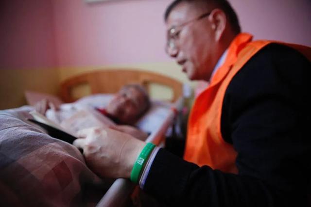 截至2019年底,我国60周岁及以上人口达25388万,占总人口的18.1%。中国发展基金会预测,2022年左右中国65岁以上人口将占到总人口的14%,实现向老龄社会的转变。 (2019年12月3日,北京某养老院,十方缘“爱与陪伴”志愿者为一位老人读诗。摄影/本刊记者 张旭)