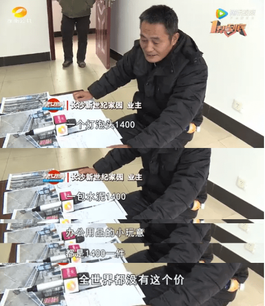 一个灯泡头1400元 一包水泥1400元 办公用品的小玩意都是1400元一件 长沙一业主气得说 全世界都没有这个价 这就是造假 这是怎么一回事呢