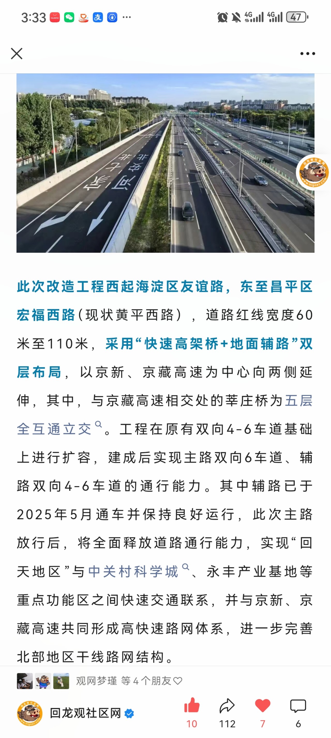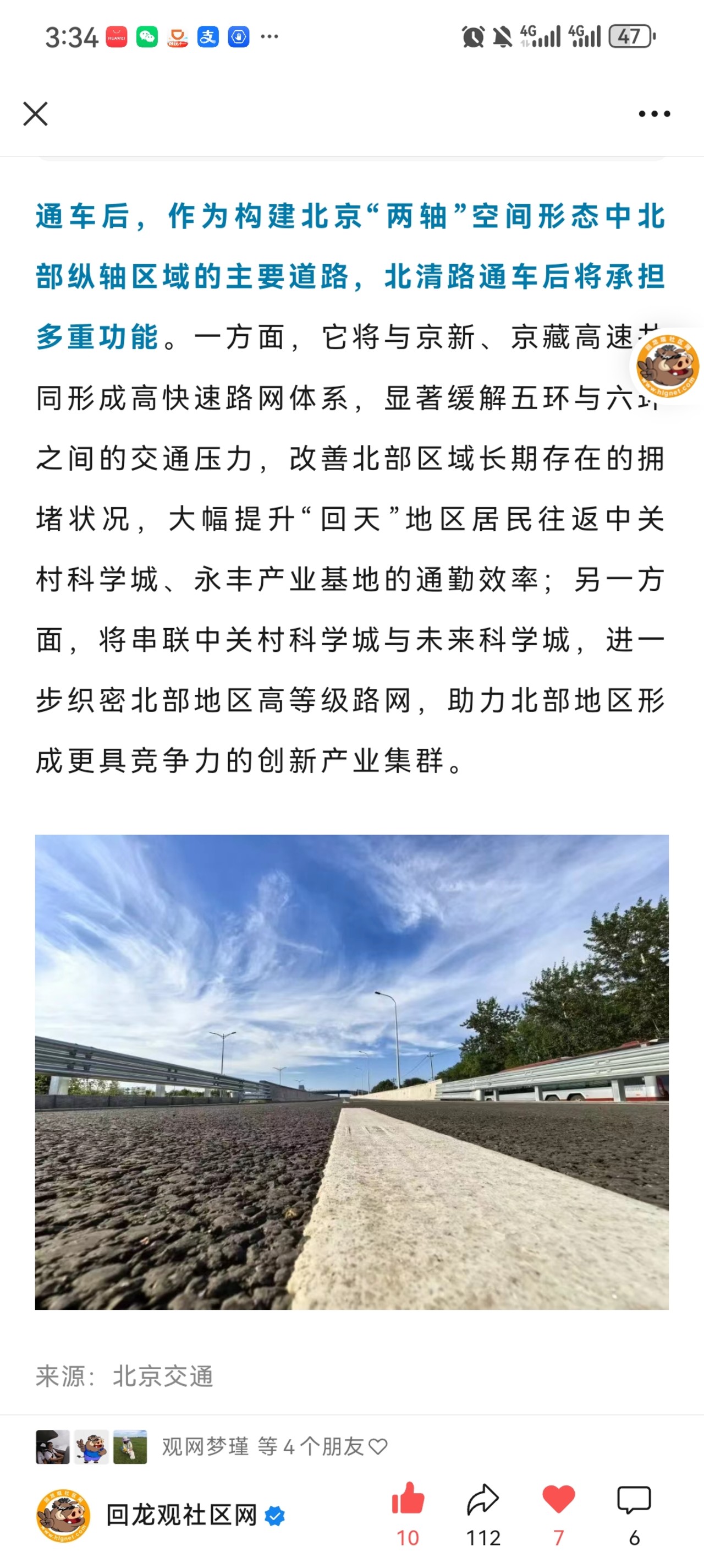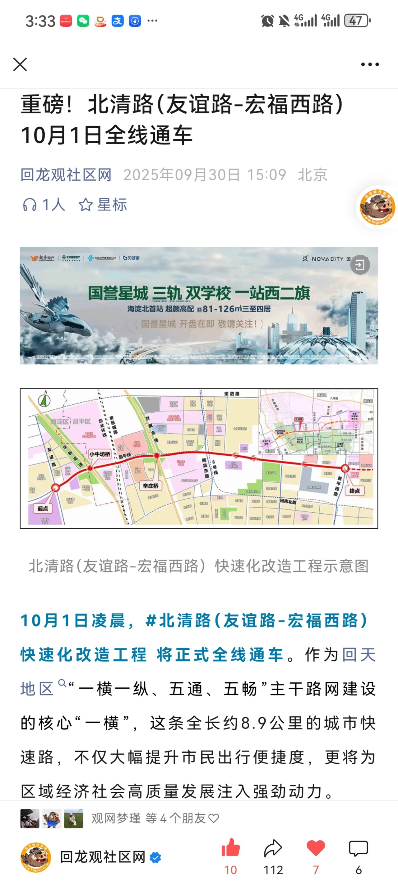 重磅!北清路(友谊路-宏福西路)10月1日全线通车