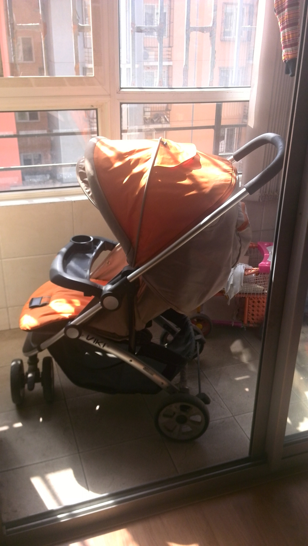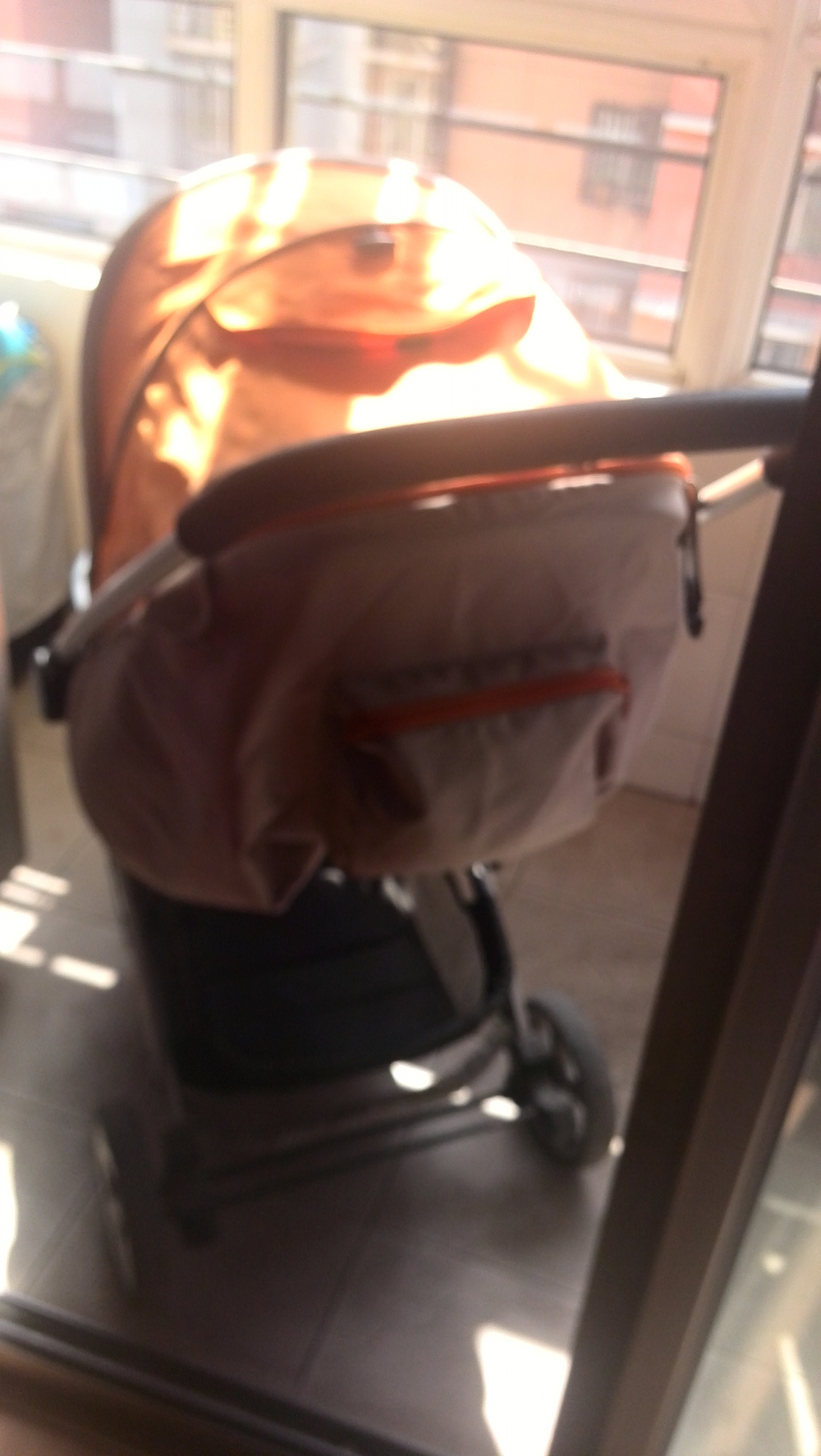 橙色的,托盘可拆,五点安全带,超大置物栏,可送二手童单鞋2双,薄款收腹带一条。上图: