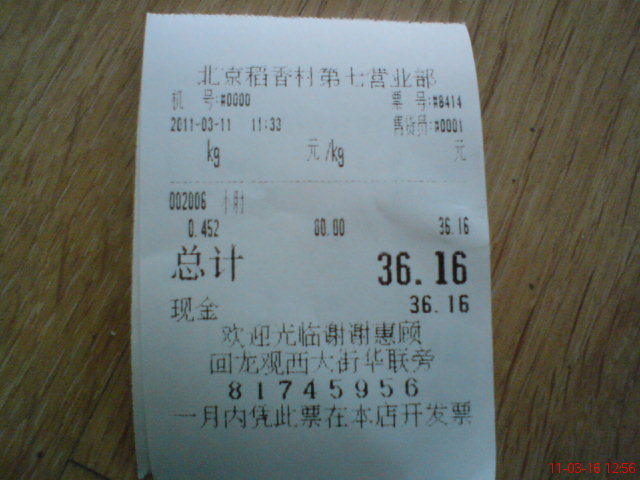 b、上面留的是个手机号,其他北京稻香村的小票上都是固定电话。